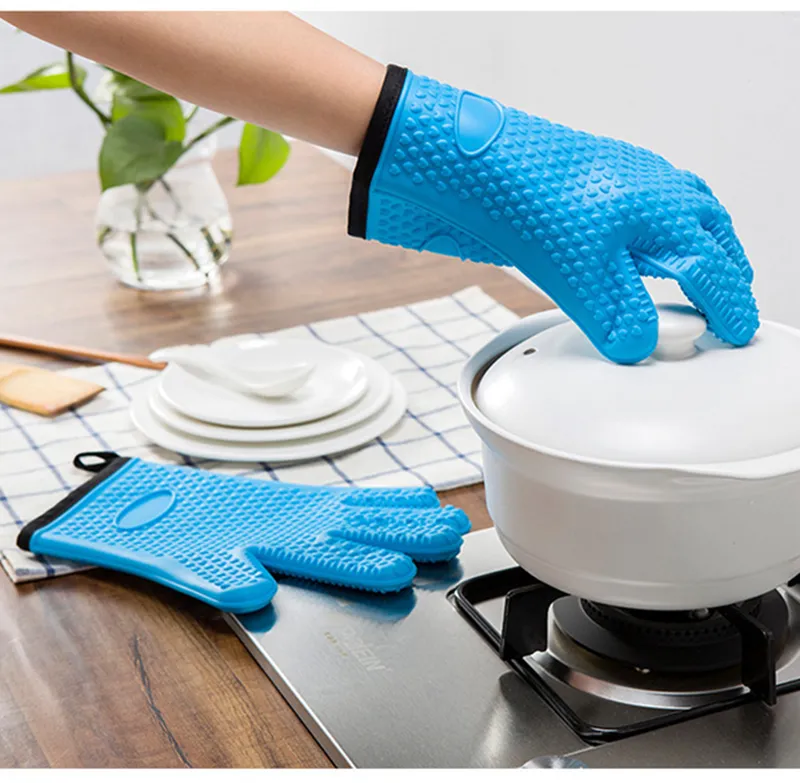 The textured surface enhances grip and control, helping users safely handle hot items in ovens, grills, and kitchens. Oven silicon gloves are easy to clean, reusable, and resistant to heat, moisture, and wear, making them suitable for both household and commercial kitchen use.